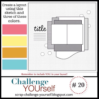 RaderaSo sweet and touching! I absolutely love the beautiful photo and how you used the sketch and color scheme to scrap it! Thank you so much for joining us at Challenge YOUrself this month!