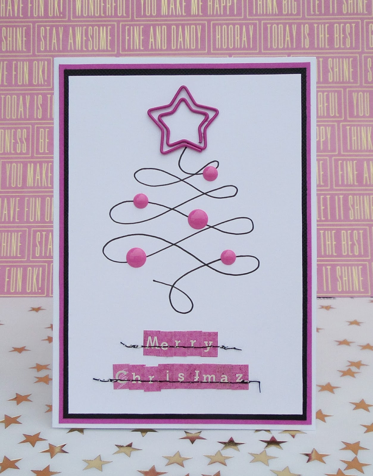 Det svart-vita ser ni ju och min valfria färg är skarpt ROSA!! Och just färgen SKARP ROSA är också den detalj jag INTE vanligtvis skulle välja på ett julkort :)